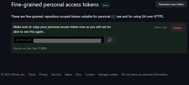 次に、Edgeデバイスがプライベートリポジトリにアクセスできるようにするために、アクセストークンを発行します。GitHub の右上にあるアイコンをクリックし、[Settings] を開きます。[Developer Settings]を開き、[Personal access tokens]-[Fine-grained personal access tokes]の順に画面を開きます。画面右側の[Generate new token]をクリックします。